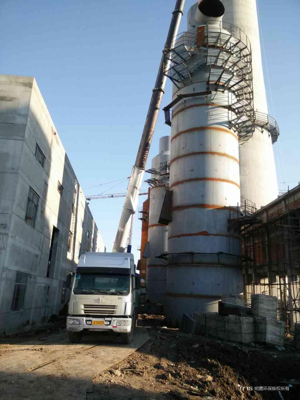 山西永鑫脱硫塔主体吊装完成